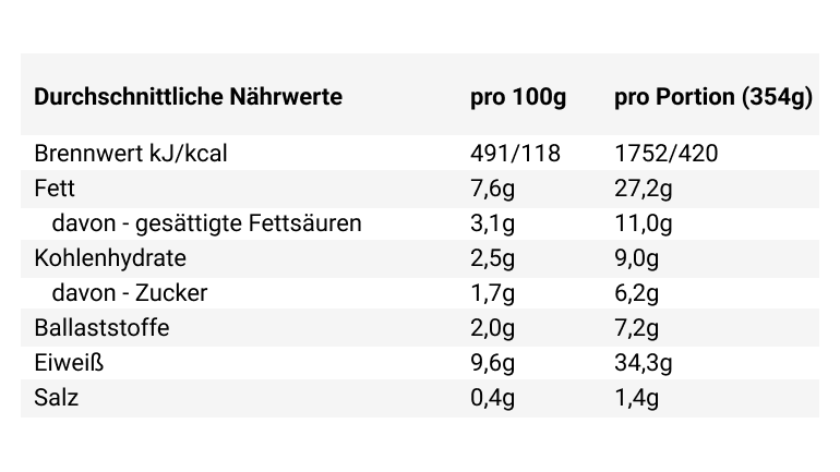 - eine Nährwertdeklaration