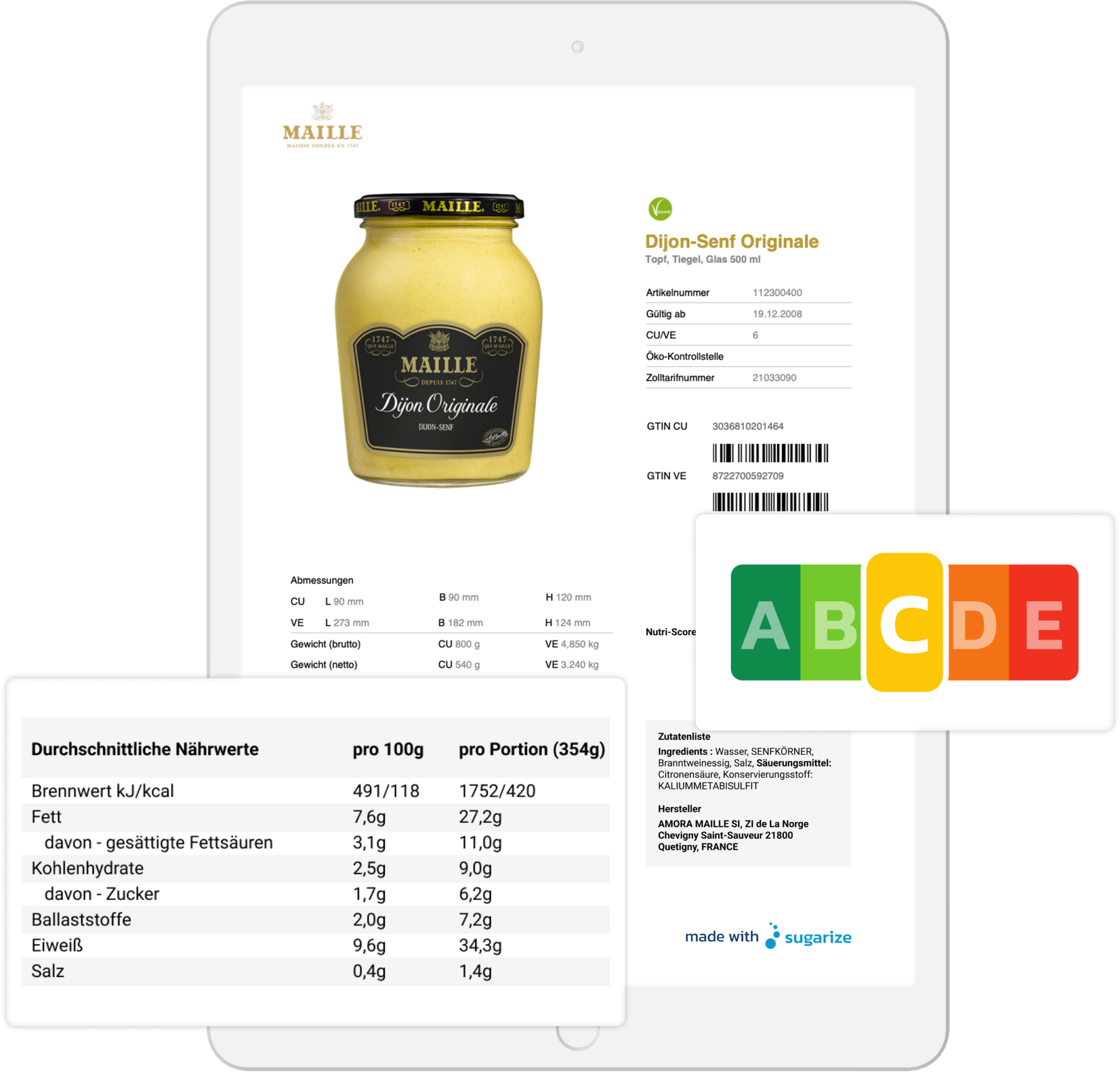 Mit sugarize erstellst du Nährwerttabellen, Nutri-Score und Zutatenlisten in kürzester Zeit – immer aktuell, gesetzeskonform und einfach integrierbar.